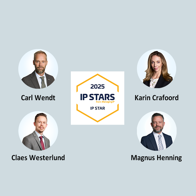 Our consultants Karin Crafoord, Magnus Henning, Carl Wendt and Claes Westerlund have been recognised as IP Stars 2025 by Managing IP (MIP).